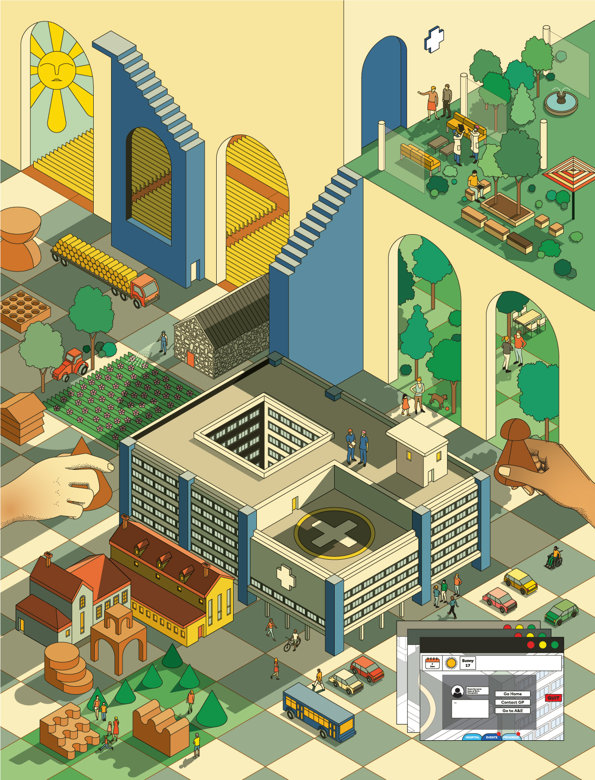 Irena is a trained architect and practicing illustrator based in Belgrade, Serbia. She studied at the Faculty of Architecture in Belgrade, where she received her Master’s Degree. Her work is very much influenced by her architectural background. She entered the world of illustration in 2014. She has produced work for various magazines and galleries. Her style is a combination of isometric views and bold colours, often featuring interiors, rooms, buildings and complex structures.